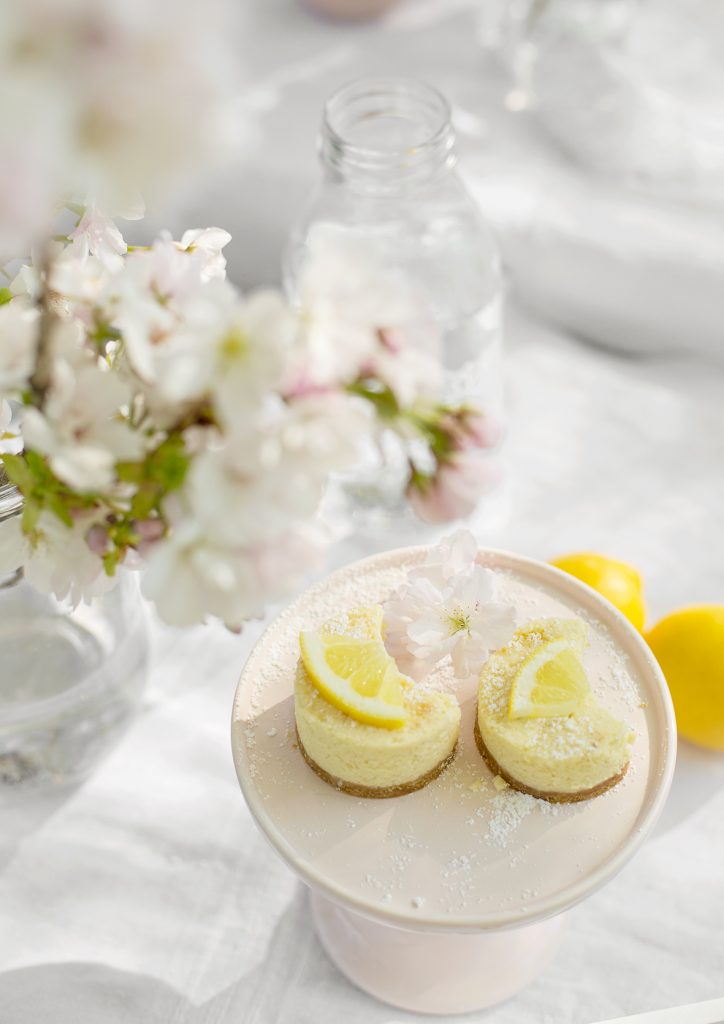 Den Cheesecake habe ich übrigens in zwei kleinen Formen gebacken und dann mit einem runden Ausstecher in Kreise und kleine Halbmonde ausgestochen. So kann sich jeder einen kleinen Leckerbissen schnappen und es sieht dazu wunderhübsch aus.