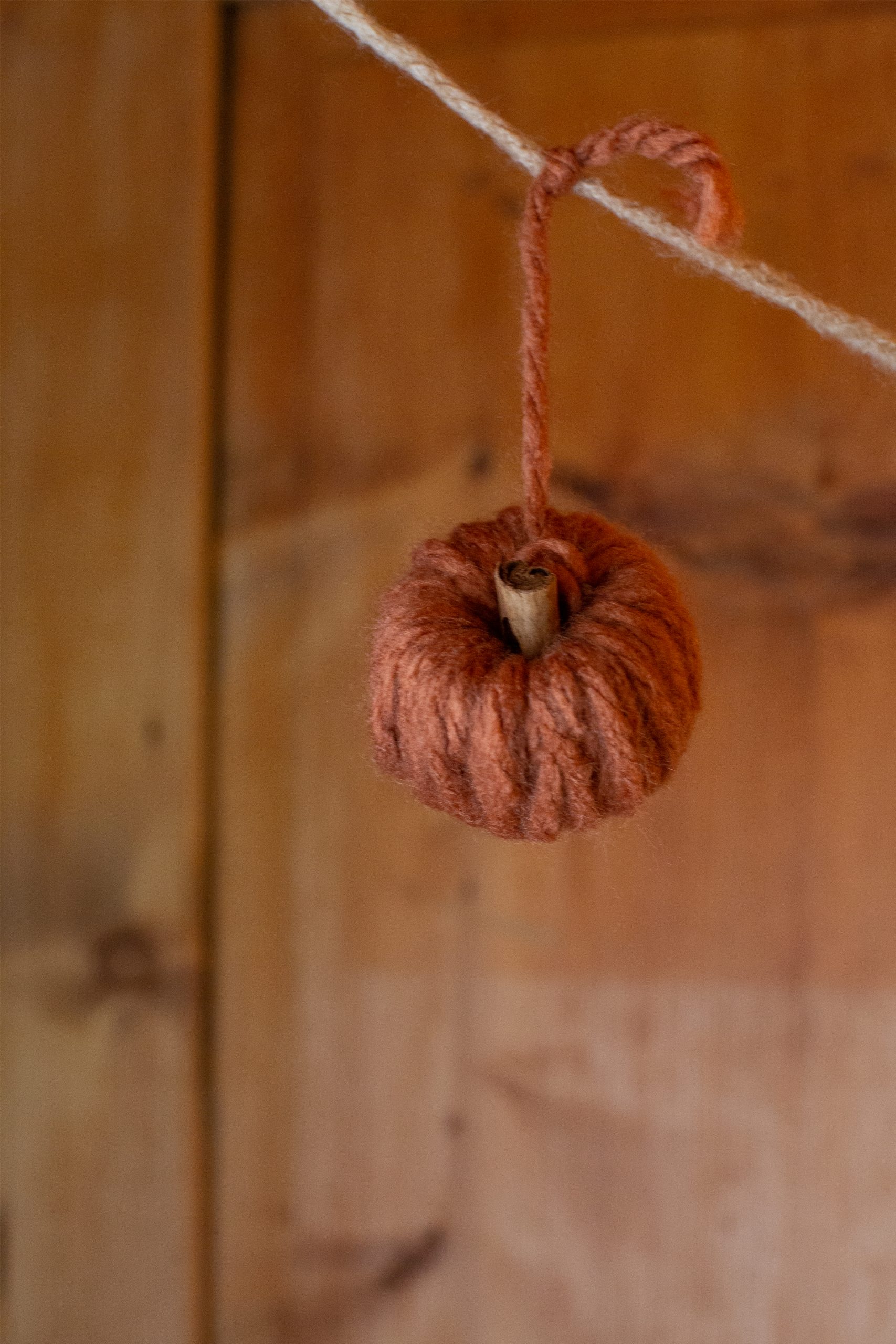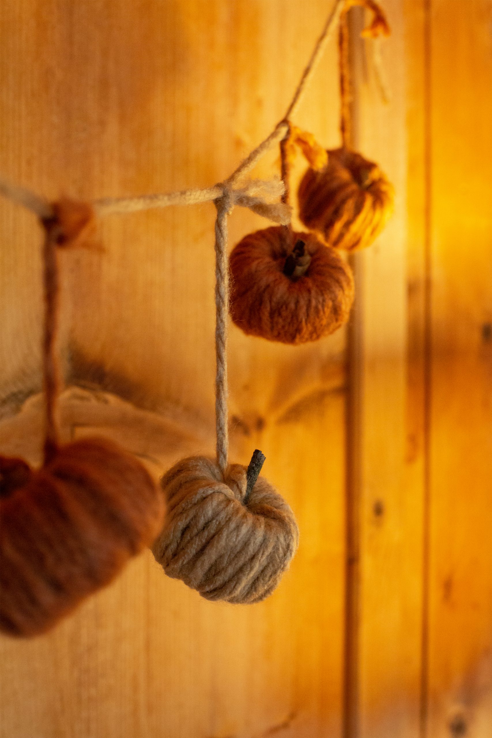 6. Jetzt nur ein langes Stück Wolle abschneiden, an der ihr alle Kürbisse befestigen könnt.