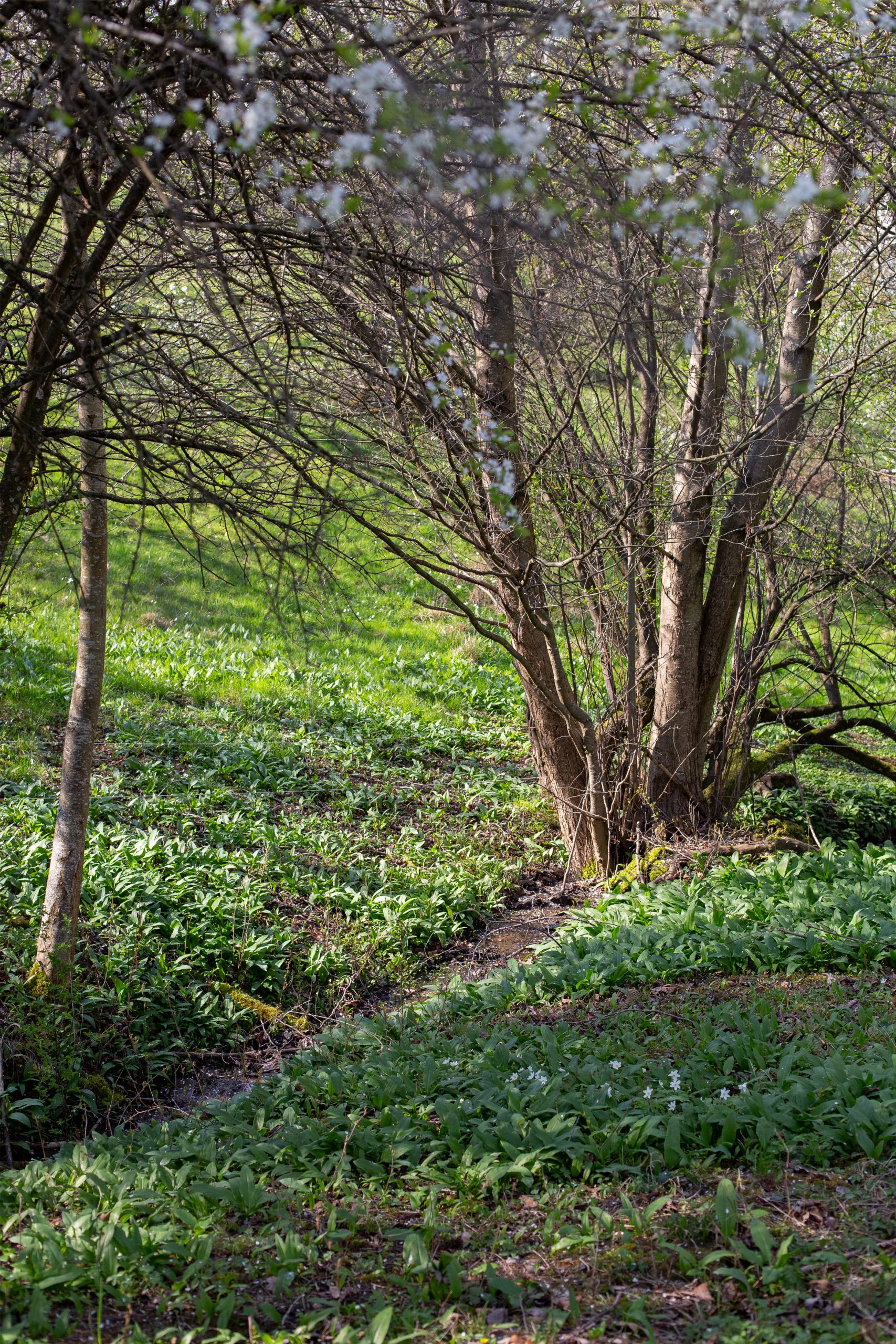 Wie da unten am Bachlauf alles voller Bärlauch ist und der Jahreszeitenübergang so richtig zu sehen ist, manches erblüht und manches doch noch kahl, muss man inne halten um auch all die Details zu merken.