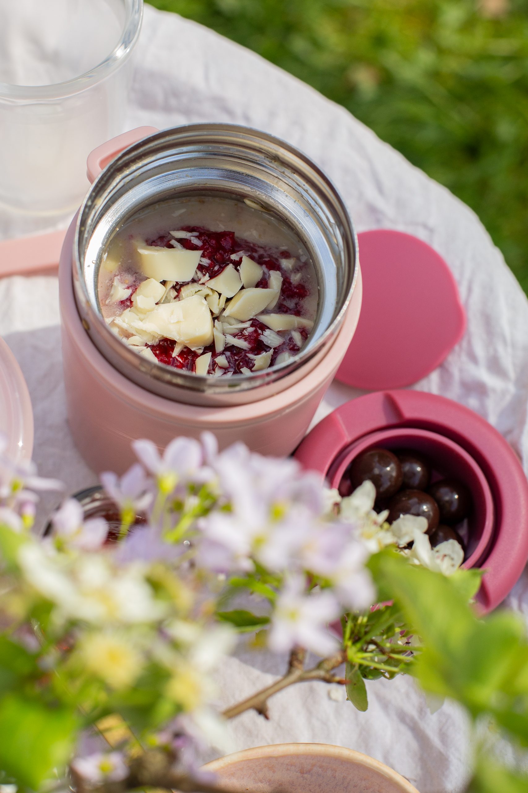 Der Thermobecher ist für mich super praktisch, dann muss ich auch nicht direkt alles aufessen, kann es mir so einteilen, wie ich gerade Hunger und Lust darauf habe.
