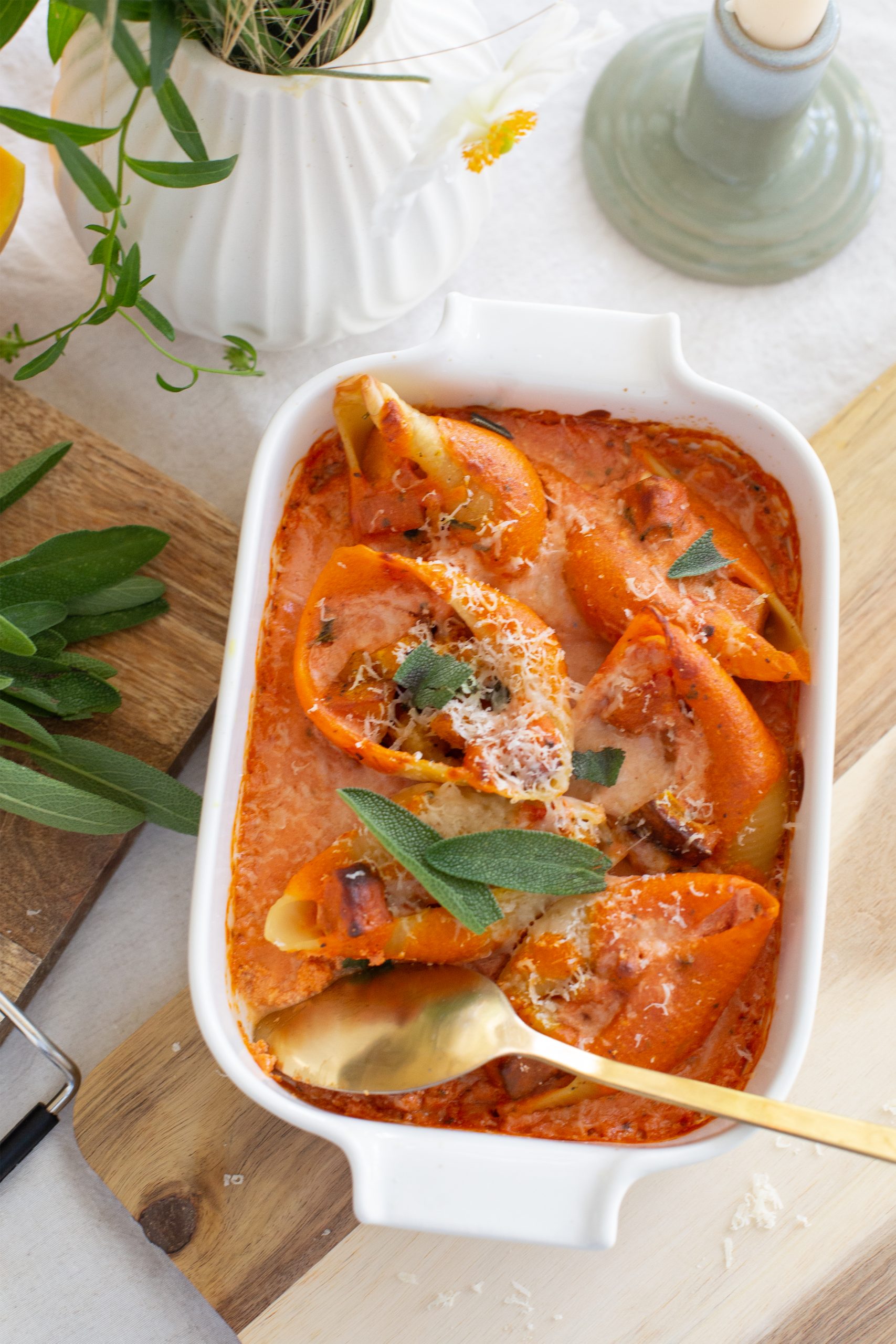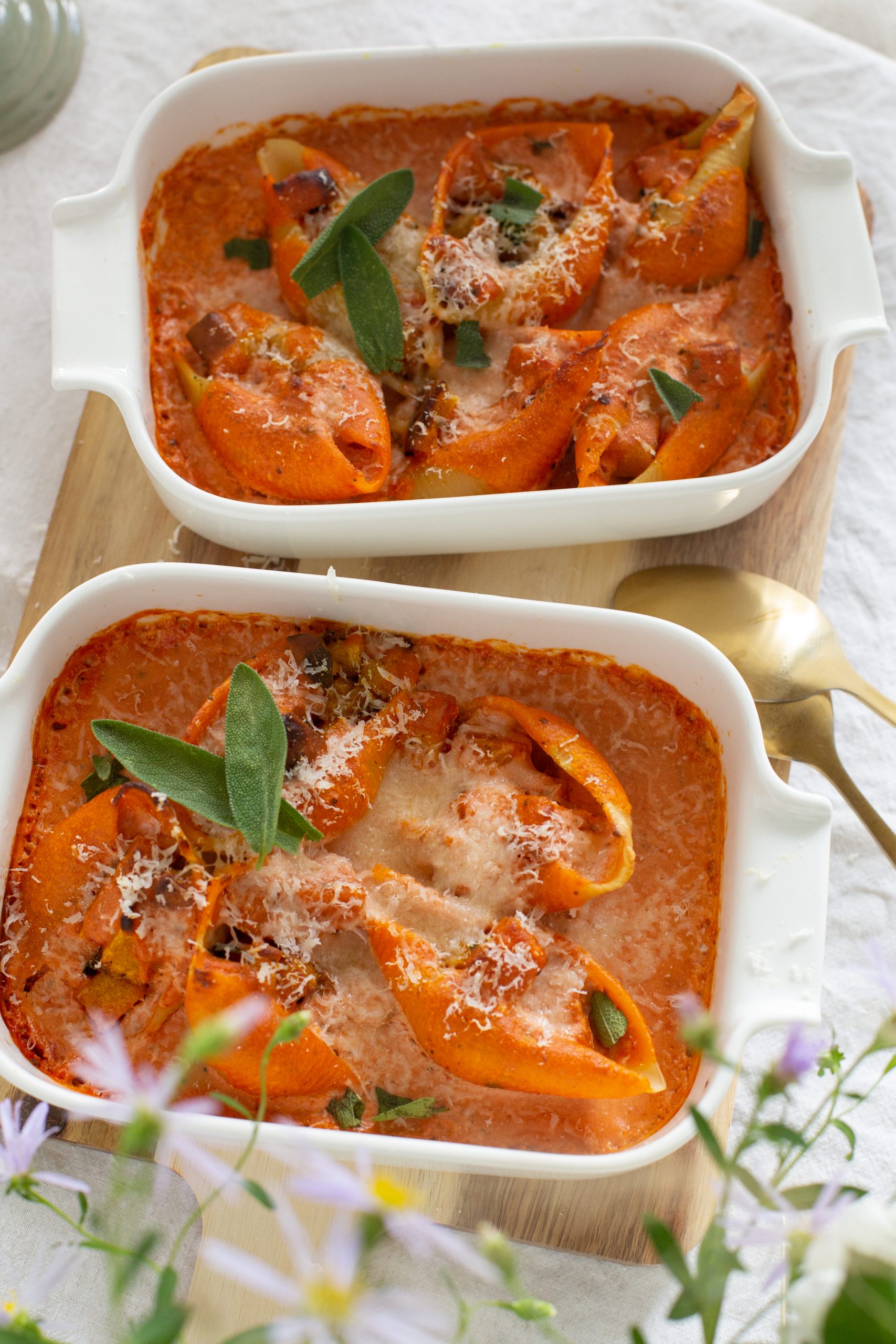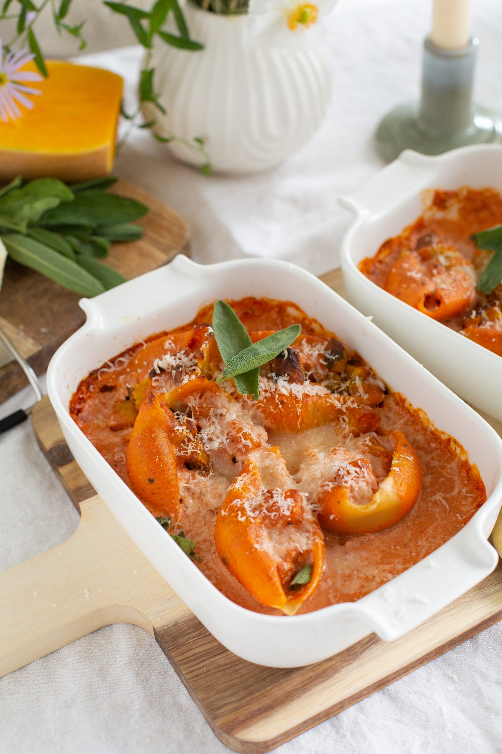 Riesenmuschelnudeln gefüllt mit Salbeikürbis in Ricotta- Sahne-Soße