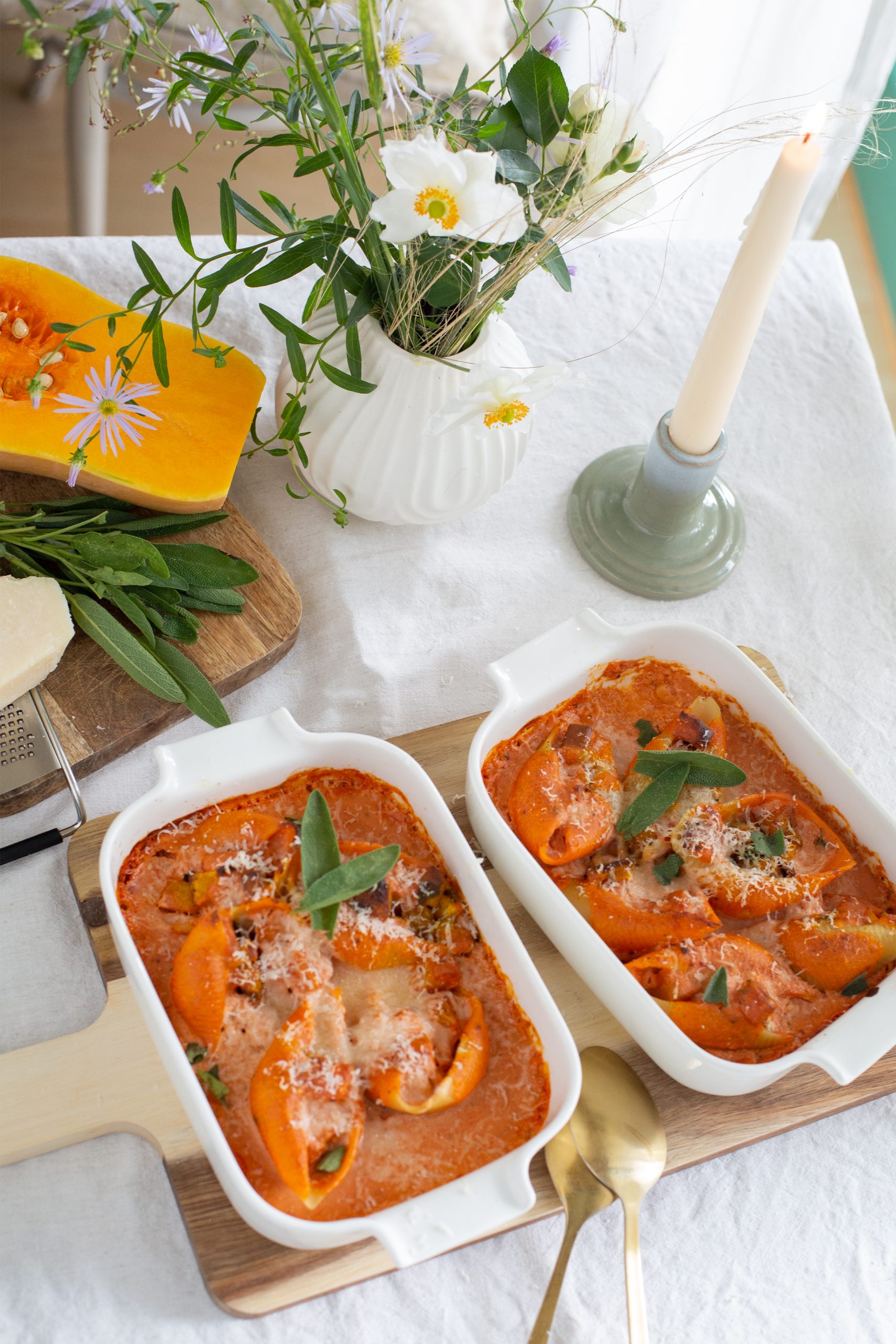 Als ich die große Pasta im Supermarkt entdeckt habe, wusste ich sofort, das ich diese mit Kürbis füllen möchte und hatte schnell die Rezeptidee zusammen.